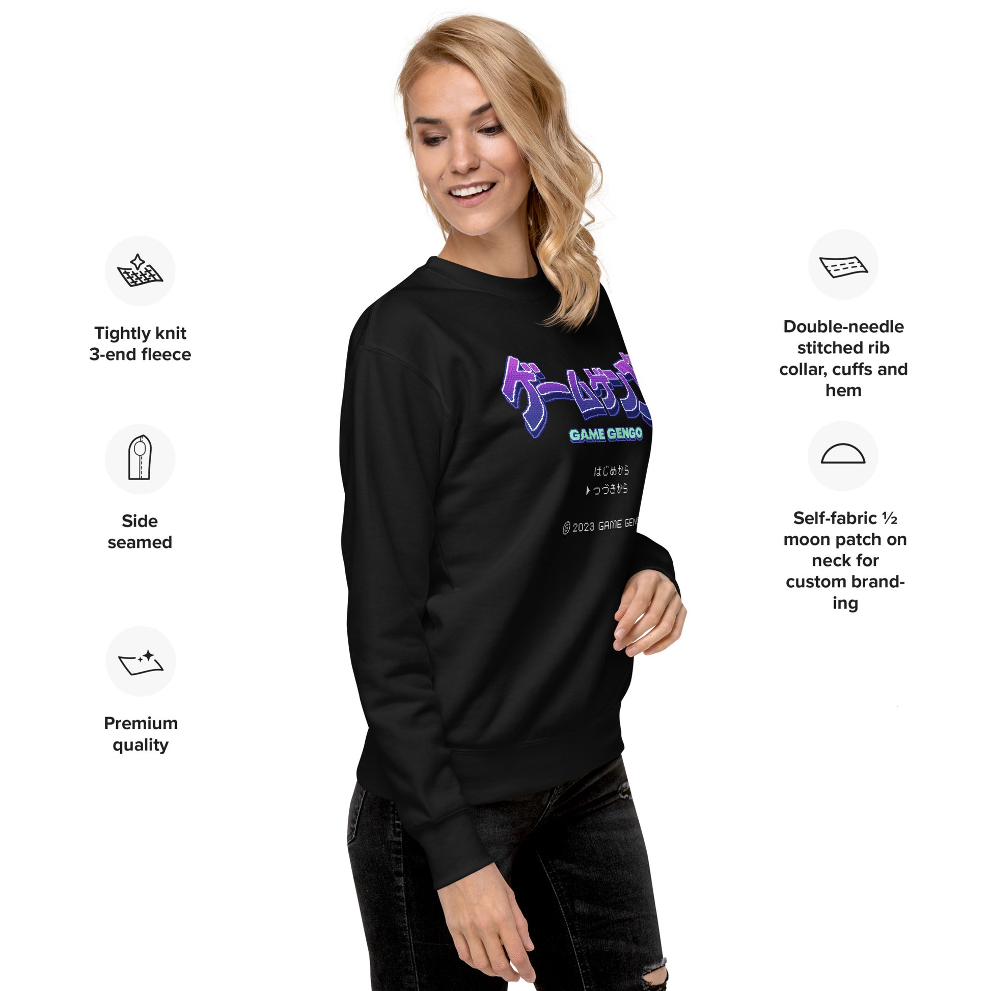 • Double-needle stitched rib collar, cuffs, and hem